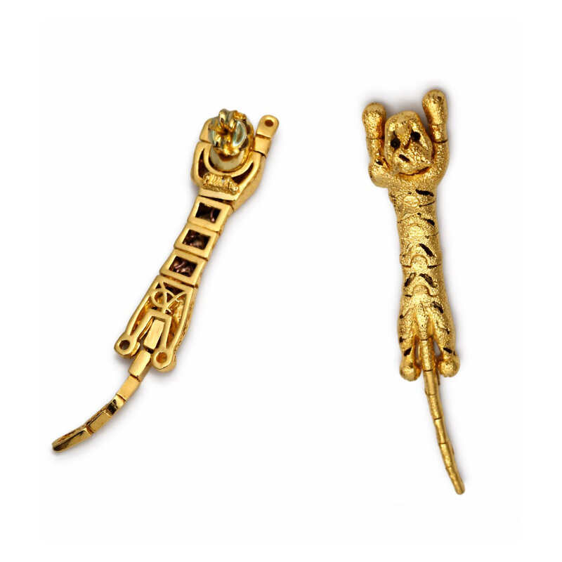 Art. 001/1 orecchini tigre in bronzo bagnato in oro giallo/bianco/e rutenio con occhi di porcellana e di circa gr. 27